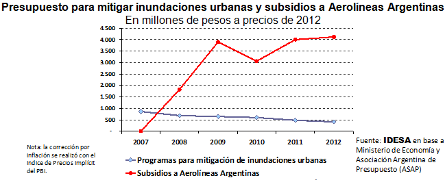 Le paso a la PresidentA tres "datitos" del período 2007/2012 y un gráfico. Son del informe de IDESA sobre inundaciones y presupuesto.
