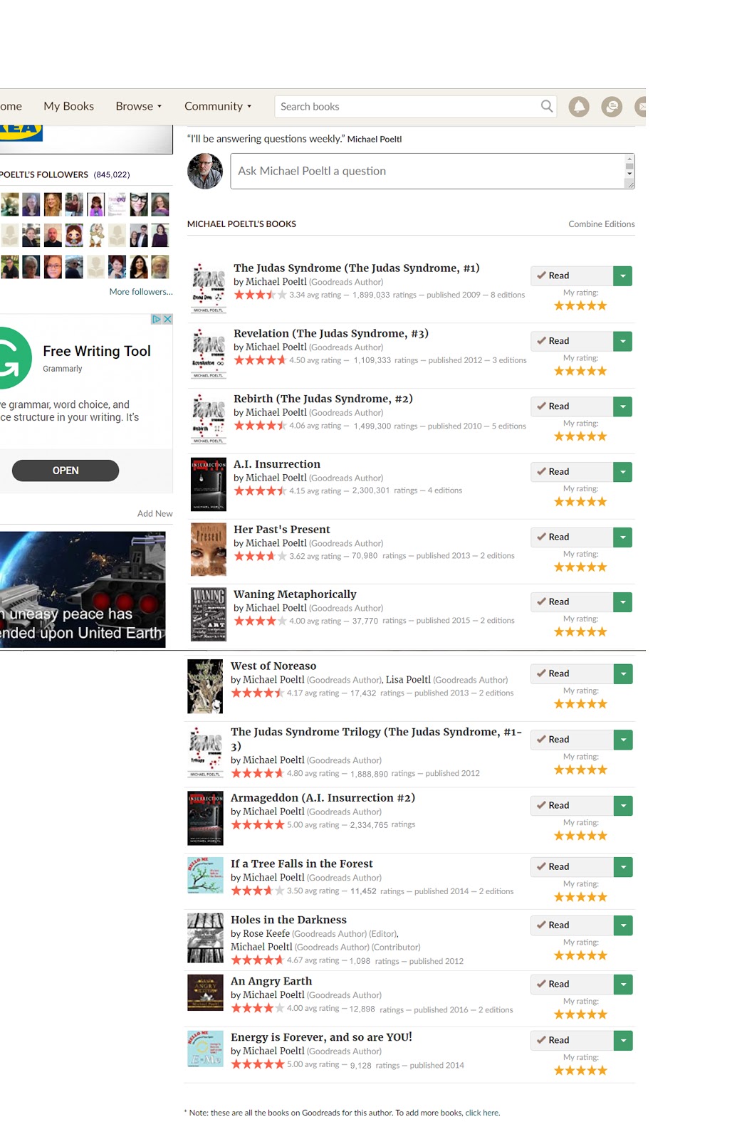 An impressive number, right? It's easier than you think. But keep in mind: thinking is a big part of how this sort of thing happens. I’m not here to sell you on positive thinking though if I were, I’d direct you to my Hello Me Series rather than show you my 2.3 million ratings on my sci-fi book(s) on Goodreads.