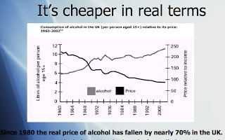 You will be hearing a lot of cant and nonsense about this scheme in the next few months as the Department of Health/British Medical Association PR machine turns up the throttle. The tone of the discussion can be gauged from a meeting hosted by ChaMPs in 2010 when the usual lies were presented as facts. For example, they said that the price of alcohol has fallen in real terms since 1980. In fact, alcohol has risen by 20% in real terms. Either they don't know what 'real terms' means, or they are willfully misleading the public.
