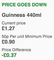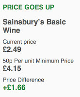 PRICE GOES DOWN? It won't, will it? If anything, minimum pricing will encourage premium brands to charge more. If a half decent £4.15 bottle of wine costs the same as much as a horrible bottle of £2.49 plonk, the former can surely get away with charging £5.