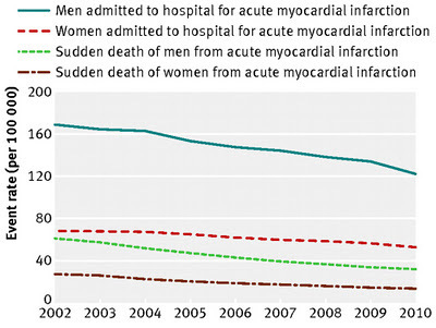 You knew this already, right? I only mention it again because this graph comes from a new study in the British Medical Journal which looks at the the heart attack rate in England between 2002 and 2010. So, just in case you think I've been making up the data these past two years, let this assure you that I have not.