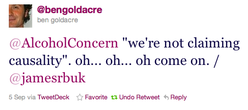 As Straight Statistics points out, Alcohol Concern quite explicitly did claim causality: