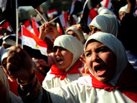 But you have changed all of that. Around the world, we've seen your presence across television screens, in newspaper pictures and throughout the internet. We've heard your voices on the radio, in interviews and speaking to friends, colleagues and global citizens. We've felt the strength of your emotions and beliefs translate into political change – which was unforeseeable three months ago – change that has occurred thanks in great measure to your participation. We have seen you side by side with men demanding justice and freedom. Irrespective of religion, ethnicity, geography and education, you have had your say. And your say has made a difference.