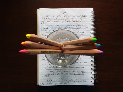 I outline longhand in a notebook and use a color-coded highlighting system to organize my notes. But highlighters, of course, are plastic (and toxic). Fortunately, a super-easy switch to make is to highlighter pencils. These are basically just giant colored pencils, but they work just as well as the markers.