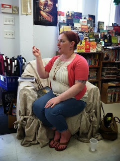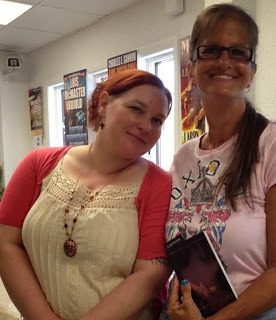 Here's a recap of my most excellent day spent at at Booktrader of Hamilton! The first order of business was to collect my traveling companion, the lovely and talented Amy, in Queens. That leg of the journey went off without a hitch… until I went the wrong way on the BQE. Oops. Luckily, I had my trusty GPS with me, and after traveling in ever-shrinking concentric circles, I arrived at Amy's relatively unscathed. Not wanting to tempt fate twice, Amy drove us out of Queens. As soon as we arrived at Booktrader, I knew this event was going to be a success. First of all, there's a mermaid on their sign. Is that a good omen or what? And I finally got to meet Joan, proprietress of Booktrader, although there was evidence that we'd met at BEA. We had both been so overwhelmed, we'd forgotten! I also met Jen, who works at Booktrader and was a deciding factor in making my day awesome. What a turnout we had! I read from Copper Girl, and then we had sort of a Q&A period. It gradually evolved into a discussion of trends in books, what authors we love to read, and the age old question: are any movies better than the book? And, I just might have dropped a few hints about the rest of the series :) Pictures from the event are below. I can't wait to go back once Copper Ravens is out!