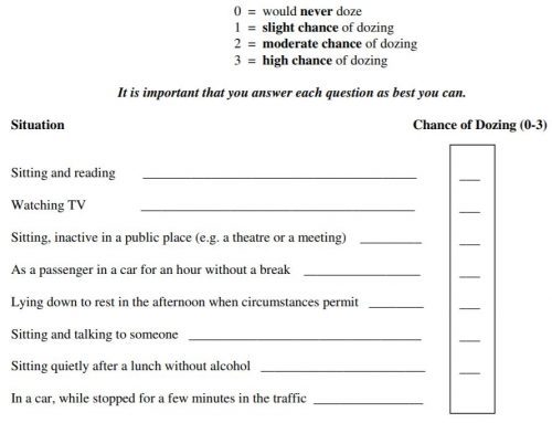 ‘often,’ or ‘always’ […] or (4) an irresistible tendency to fall asleep during the daytime 1 or more times per week.” Comment: OK, maybe I’d agree to fall into the 4th category. As for the ESS [Epworth Sleepiness Scale], I was rated on it multiple times in my sleep apnea journey. It’s the sum of responses to the prompts in the image below. Every time I filled it out I faced the following conundrum: I couldn’t figure out if intent mattered. That is, in all but one of these situations I would not ever fall asleep if I didn’t decide I wanted to, no matter how sleepy I was. The exception is “lying down to rest in the afternoon when circumstances permit” because I literally only do that if I want to sleep (so intent and the situation are the same thing). So I always scored a 3 when, in fact, I have dozed in several of these situations (because I decided to and it was too much bother or otherwise impossible to find a place to lie down — intent!). I could easily talk myself to a 7-10 on this and, believe you me, if I thought it mattered one whit in terms of getting treatment I needed, I would have. In truth, I don’t think it mattered at all and I doubt very much if anyone looked at my myriad completions of the ESS. I hate these kind of questionnaires. Seems like useless patient busywork. If I’m wrong, I’d sure like to know.