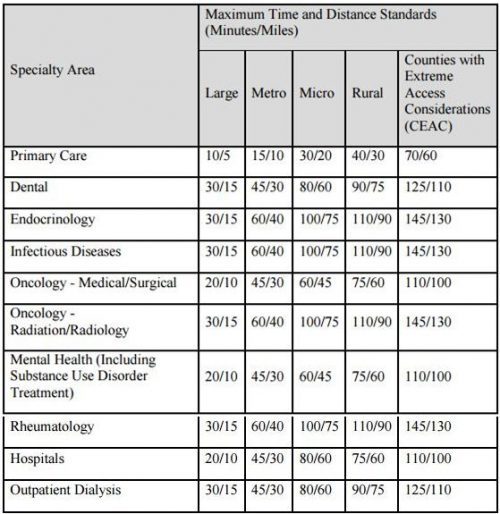 Network adequacy standards