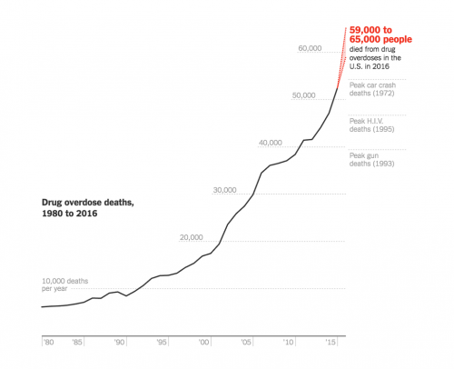 The Times estimates that 62,500 Americans died of drug overdoses in 2016.