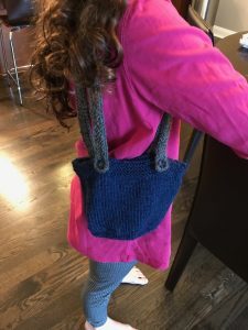 I can make jokes about knitting all day, but I really loved this. My mother used to be a Home Economics teacher, and I can remember doing things like needlepoint as a kid. When Sydney got into Rainbow Loom a few years ago, I enjoyed doing that with her, too. But knitting rocks. It’s really versatile, you can make all kinds of things, and once you get going, you can really move. The hat took two weeks, even with lots of other things to do, and I bet I could do it more quickly next time. The bag took a week.