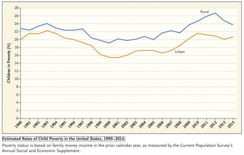 We summarize new data from the Centers for Disease Control about the epidemiology of these problems among rural kids. We also discuss data from the US Department of Agriculture which show that poverty is higher among rural children than urban children and that rural child poverty is higher than it has been since 1993.