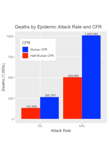 These numbers are shocking. Even under our most favourable scenario, roughly 133,000 people will die. Of greater concern, if we assume that US COVID-19 is half as lethal as the Wuhan data, then under a plausible 19% Attack Rate, there would be half a million deaths. Under the least favourable scenario, 1,000,000 will die.
