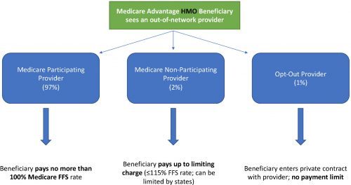 Outside of the pandemic and emergency situations, knowing how much you’ll need to pay for out-of-network services as a MA enrollee depends on a multitude of factors. Though the vast majority of American physicians contract with Medicare, the intersection of insurer-engineered physician networks and the complex MA payment system could lead to significant unexpected costs to the patient.
