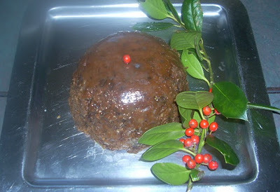 My new Christmas pudding is happily imbibing as I write, happily awaiting the big day. Here is a photo of last year's, before we doused it with brandy. And ate it, of course.
