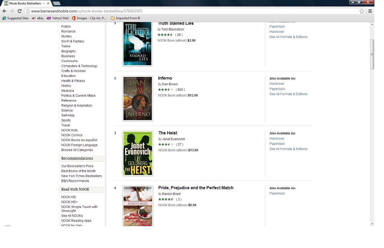 during the recent sale. I was thrilled that it reached #23 in the Amazon Top 100 (see left), #4 on the Barnes & Noble Bestseller List and #1 on their Romance List (see both below). Very exciting for me (I mean, c'mon! I took screen shots!!), and I couldn't be more grateful to all of you. Thank you SO much.