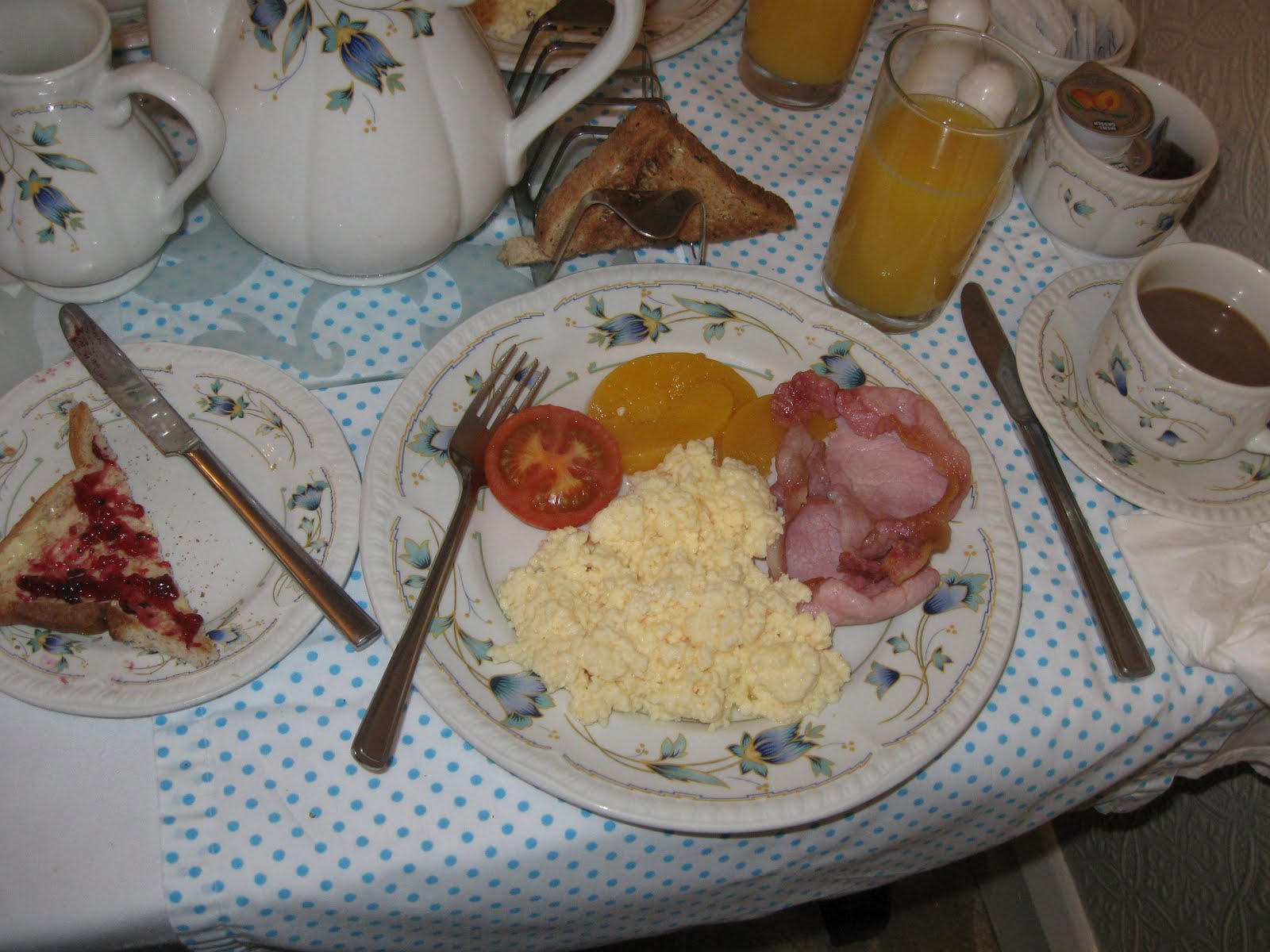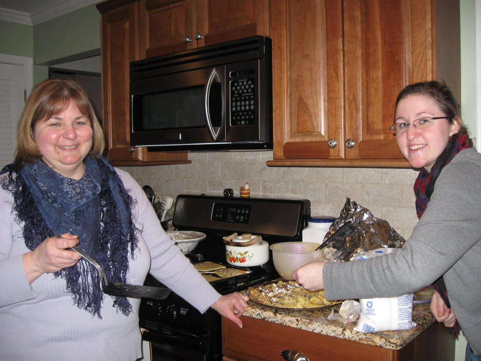 Well, Lisa and her daughter Megan (pictured left), who had both studied abroad in Salzburg, Austria -- a couple of decades apart -- had some beautiful photos of their respective trips and jointly made an amazingly yummy and oh-so-buttery kind of Austrian crepe-like pancake (I should have asked them to write the name down because it was in German and I couldn't pronounce it to save my life, but, boy, was it ever delicious!!) and they served it with warm jam on top. SO GOOD.