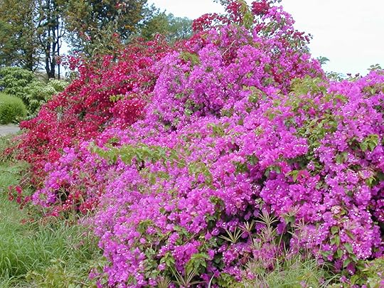 Bougainvilla, Spectabilis. 15-20 foot tall, drought-resistant when established, and truly "spectabilis."