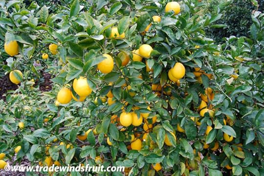 Meyer Lemon. These are sweeter than standard lemons but they ain't oranges. In addition to the good fruit, the 5' tall by 8' wide shrub is quite ornamental. That picture is a realistic image of how prolific it is. Do remember that all citrus are very heavy feeders--That means that an orange, lemon, or grapefruit tree with a four-foot spread, it needs about three pounds of heavy-nitrogen fertilizer every year, divided into three doses: perhaps April, July, and September. My guest recommended using Maxsea acid plant food. Other experts recommend using any old high-nitrogen fertilizer, even lawn fertilizer, which is much cheaper.