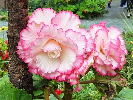 A caller mentioned tuberous begonia. A fabulous plant, many of which trail and so are perfect for a hanging basket--if it doesn't get destroyed by mildew.