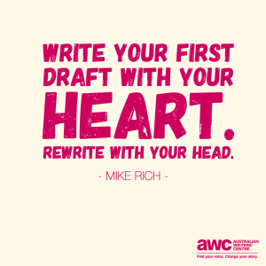 I began work using an older American woman’s voice in first person narration; an elderly Australian woman in second person; and the young Australian mum in third person. The story would have embedded dialogue, following author, Debra Adelaide’s example, where only the formatting and actions of the characters, rather than dialogue marks, reveal to the reader who is speaking at that time. The elderly Australian woman would reveal the pitfalls and joys of writing a novel in a humorous, tongue in cheek, vein.