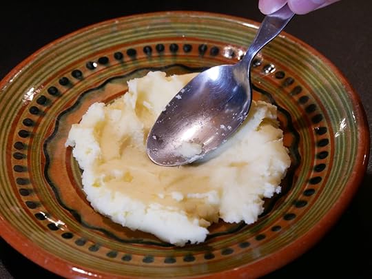 Wykładamy purée na talerz, a jeszcze lepiej do miski i formujemy na środku wgłębienie.