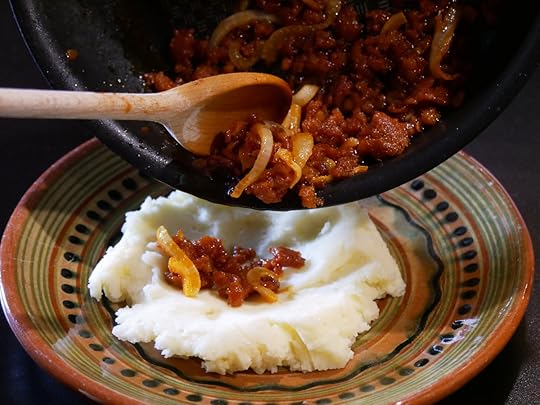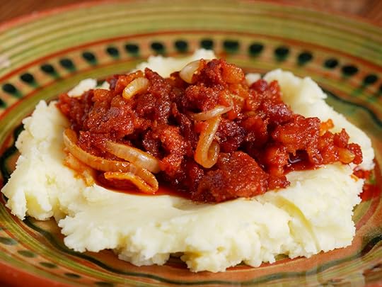 Sos z chorizo powinien wylądować w owym wgłębieniu.