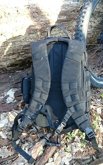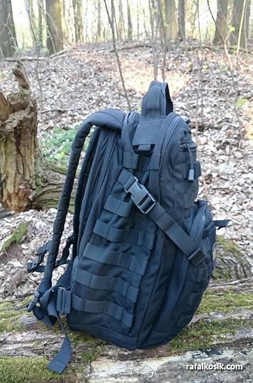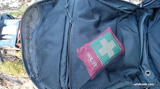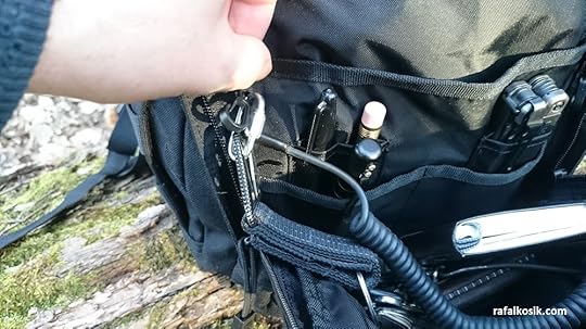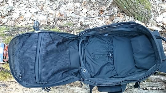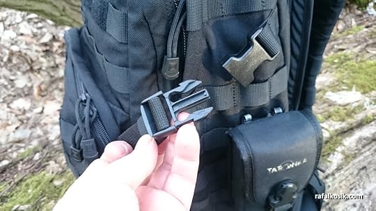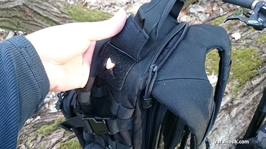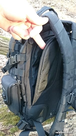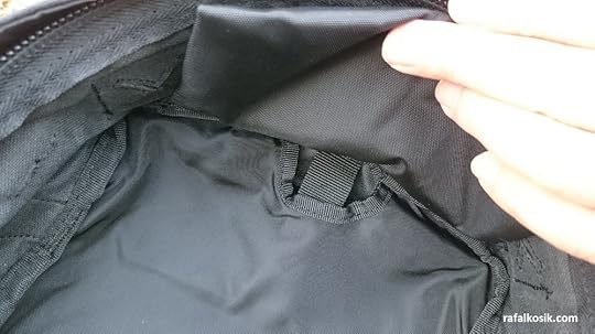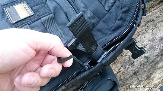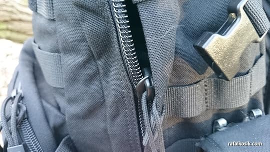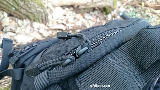 Trzeba też wspomnieć o wadach. O nich zawsze ciekawiej się pisze, bo można się trochę powyzwierzęcać nad nieudolnością projektantów. Zabezpieczenie suwaków prze rozpięciem przez kieszonkowca jest możliwe, ale wymaga ręcznego przeplatania sznurków przysuwakowych o taśmę kompresyjną. Same taśmy kompresyjne są dwie (Maxpedition Falcon ma ich osiem) i są wszyte wbrew logice, czyli z klamerkami od strony pleców. W efekcie, choć łatwiej je odpiąć, gdy plecak jest na jednym ramieniu, całe paski majtają się i wchodzą w oba główne suwaki w najmniej odpowiednich momentach. Nie potrafię znaleźć uzasadnienia dla tej fuszerki projektowej. I nawet zastanawiam się, czy tego nie poprawić. Można dokupić i zamontować dodatkowe paski kompresyjne.