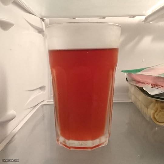 Gdy po kolejnym miąchnięciu napój zacznie przybierać właściwy kolor, wywalamy saszetkę.