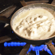 Wolno czytać. Kozi ser również należy podgrzać. Można na osobnej patelni, można na skraju patelki matki ;)