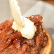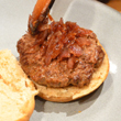 Walimy mięcho na kanapkę i nakrywamy tą karmelizowaną cebulką.