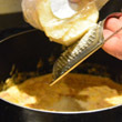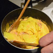 Tu nie mam obrazka, więc tylko napiszę, że szklimy cebulkę, potem dorzucamy czosnek, potem pokrojoną w cienkie paski szynkę.