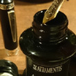 Nie dorosłem jeszcze chyba do zakupu stacjonarnego kałamarza, który by wyglądał jak zajumany z Buckingham Palace. Dlatego też ważna jest dla mnie buteleczka, w której kupuję atrament. Ona będzie moim kałamarzem przez rok albo dłużej. A jeśli można się otaczać rzeczami ładnymi albo brzydkimi, po cóż wybierać te drugie?