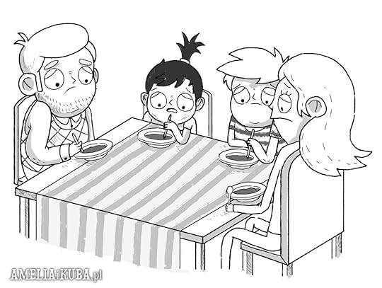 — Nie ma takiej opcji. — Tata przełknął z niesmakiem. — Zupa szpinakowa jest zupą szpinakową, a nie parówkową.