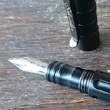Samo pióro Schrade może być wykorzystane jako kubotan – wtedy będzie miało taką mniej więcej wartość bojową jak szczoteczka do zębów. OK, ma spłaszczony, wciąż czubaty czubek, który może służyć w charakterze awaryjnego wybijaka do szyb. No ale kto będzie szukał pióra wiecznego po karambolu?