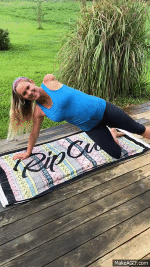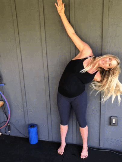 One move here that feels amazing is the “Windmills.” You stand hip width apart and hips remain level and still. Keep your arms locked, standing against a wall. Slowly but smoothly bend your torso to one side, then the other side. If you do 30 of these you will surely feel it in the best way the next day!