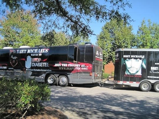 Oh, my goodness. Can you even imagine? What is Bret Michaels' tour bus doing outside a Wachovia, just steps from a freaking Food Lion, at 10:30 in the morning? No one had any idea, but there was a lot of speculation. I talked to a teller to get the lowdown. No one had seen Bret, just a bus driver, and it had been there about an hour. All I can think is that they were driving some equipment home and pulled off of I-40 (which is just down the street) to grab some pork rinds or something. Still, SO surreal. It was all I could do not to go up, knock on the door, and announce I was there rock Bret's world. But then I remembered that I am 40, married, a mom and am not really into longhair types. Still, very exciting.