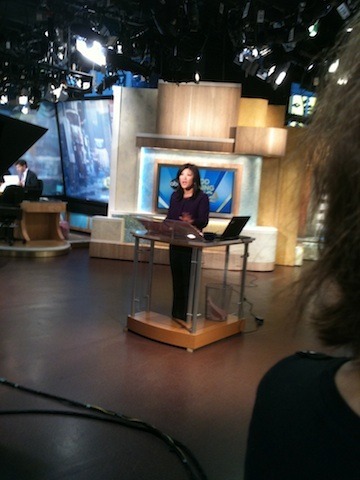 When it was time for Juju to do her segments, we all went down the hallway (often at a fast clip) to the studio upstairs or downstairs. Here's Juju doing the news:
