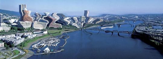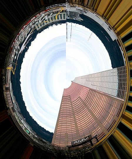 Many of the buildings of downtown Portland were usually visible from this stretch of road and for the most part, still were. They were also somehow… changing. 'Big Pink', the massive banking tower which was done up years ago in Bauhaus style copper collared glass and steel, was wavering and undulating. Now it appeared that its foundation was set anywhere between thirty five to forty five degrees to the elevation of the surrounding ground. The process continued to approximately nine storeys below the structure's apex.