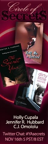 When Jenn Hubbard (THE SECRET YEAR), C.J. Omololu (DIRTY LITTLE SECRETS) and I realized we all had secret books debuting in 2010, we formed this underground authors group with secret meetings and secret activities and secret conversations...and now we're having our very first public event, tonight on Twitter!