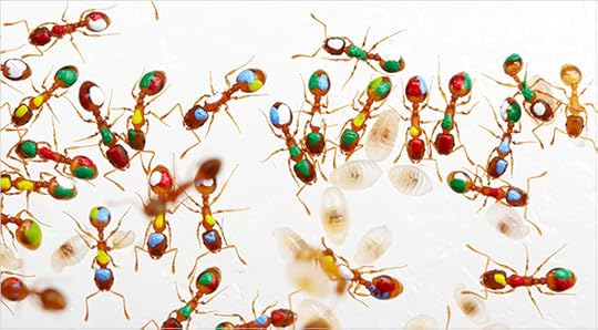 This ant picture, which I find pretty fascinating, is from a NYT article describing how scientist Ann Dornhaus color-codes ants in order to discover their roles in the colony.