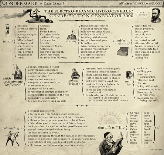 Another brilliant entry from Cory Doctorow, behold David Malki's Wondermark Genre Fiction Generator (steampunk authors, take note!):