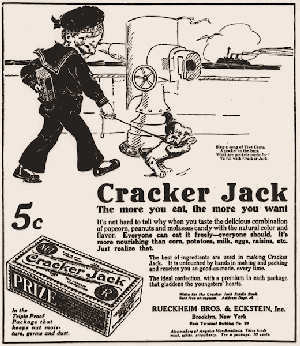 As for "American" innovation, "Cracker Jack" was developed by a German who came to America, bought out his partner and brought his brother over from Germany. The brand's roots as a snack first presented at the World's Fair in 1896 is likely a lie. the inventor of the packaging lived in Ontario -- not a part of America! -- at the time of his death.