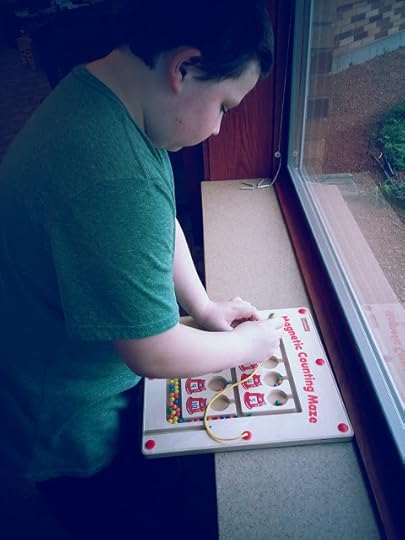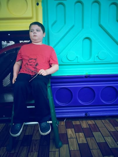 The way we did it was Mr F would sit somewhere -- the castle, a chair, the slide -- and I'd sit by him and read it quietly to him. If it got too crowded around us we'd move to a quieter spot and continue. It's hard to tell if Mr F is paying attention or not, but I figure at least hearing the reading is worth something.
