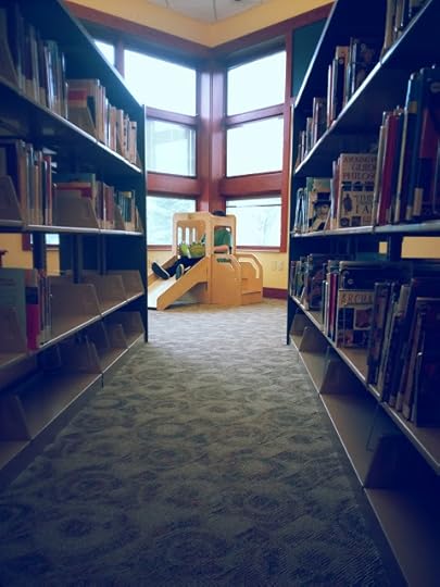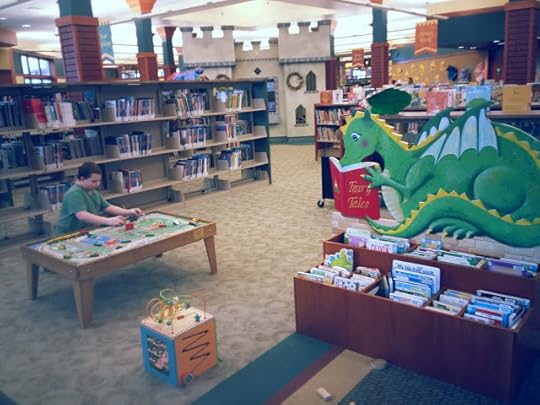 So when we went to the Verona library -- the next town over, and a library I've wanted to go to for a long time because from outside it looked really spectacular -- I decided not to follow my usual routine with Mr F, which is to pick out a book and make him read it with me. Since Mr Bunches plays with all the library toys and then reads all his books before we go, Mr F is usually stuck at the library for a pretty long time, so we walk around and look at the books and check out the movies and the bubblers and the art and etc., and then we sit and read a book together, and then we just hang out until Mr Bunches is done.