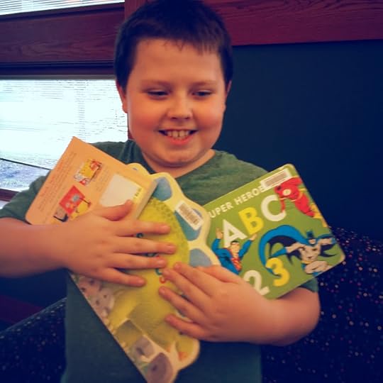 They had just a treasure trove of books for Mr Bunches. Mr Bunches likes ABC books, and books about concepts (colors, numbers, etc.) They had those in spades. And they set them out by subject, which is good. We went to one library once where they had kids' books sorted by author. Who knows the author of an ABC book?