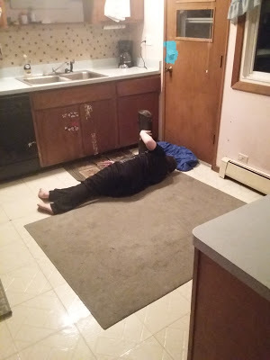 "Why're you sitting on the floor?" I asked him."I'm not sitting. I'm laying," he answered.