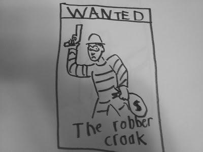 First was "The Robber Crook." As he named each one he described what they looked like and were doing, and then made the Wanted poster
