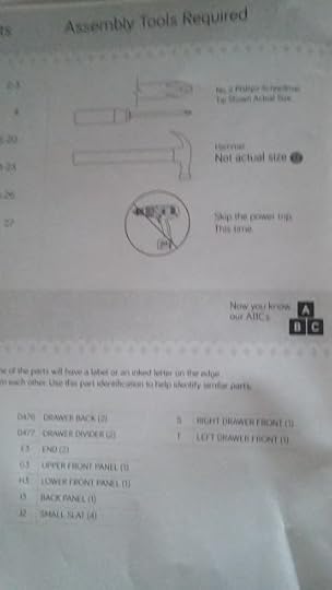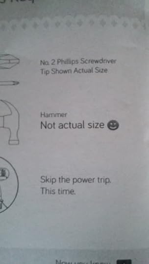 They told what tools you would need to do the job,including a screwdriver and hammer, and included diagrams of each in case you weren't entirely sure what those were...