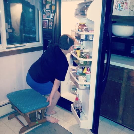 Mr F is the opposite. Some scientists have theorized that one reason autistic people like the same routines and eat the same foods all the time is to cut down on the stimuli they experience; people think now that autistic people cannot sort out and ignore sensations, that every sound, texture, scent, sight, and taste are noticed and cataloged and experienced, every time.If you are reading this while sitting at your table drinking a cup of coffee, say, you are experiencing lots of sensations that your mind just categorizes away: sunlight over here, the chair creaking, the way the table feels under your skin, the mug's warmth: you don't notice those until they are really new. But autistic people, they think, notice everything all the time, and because of that they try to cut down on all the static. Mr F and Mr Bunches eat a narrow range of foods, because they can't stand all the newness of different flavors. Mr Bunches, for example, can tell the difference between "Crunch Berries" and the generic version of Crunch Berries. He can tell the difference between Crunch Berries that come in the box with Cap'n Crunch, and the Crunch Berries that come in the box of "Oops All Berries."