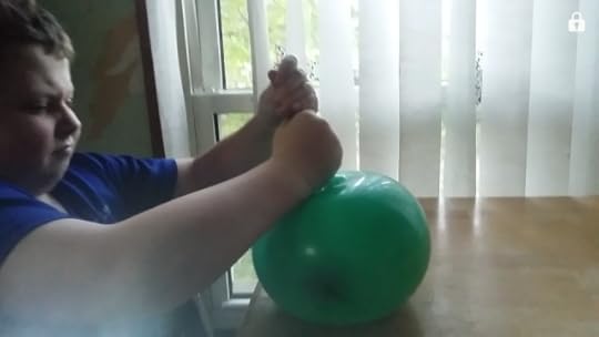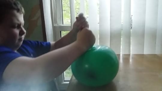 The forks, then, help him focus. That's my theory, anyway: by tapping them on his hand, or his chin, it helps him ignore all the stuff going on around him by focusing on this one little thing, these forks tapping against his chin. It's like biting on the heel of your thumb to help take your mind off the pain of your stubbed toe: if you give your mind something to focus on, it can help ignore things that are harder to take.