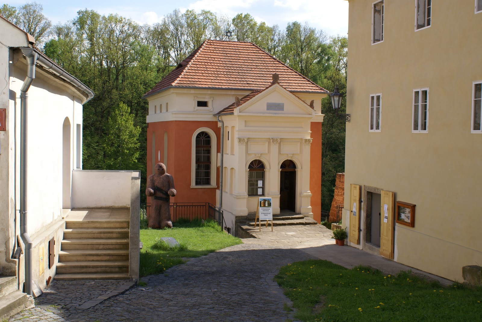 In those places, the project will carry out much-needed maintenance (such as at the synagogue in Ustek, whose lower floor has suffered water damage) but will also restore a neighboring Jewish building for use as part of the exhibition complex -- in Ustek, this means the rabbi's house next to the synagogue. since the Ustek synagogue already includes a fine little reconstruction of the former school room, the permanent exhibition here will deal with Jewish education.